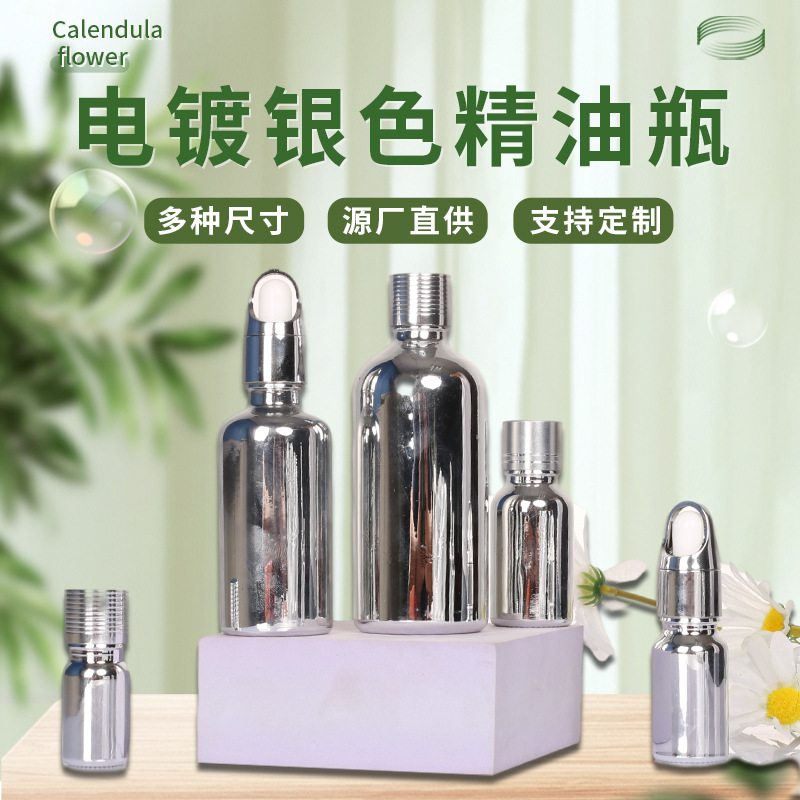 メッキシルバーエッセンシャルオイルボトルガラス化粧品分注ボトル空ボトルローションボトルプラスチックヘッドスポイト瓶エッセンスボトル