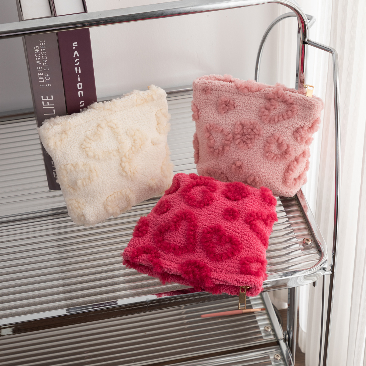新型高颜値ins風甘美ぬいぐるみかわいい化粧バッグ携帯旅行小銭入れ愛心包イヤホンバッグ