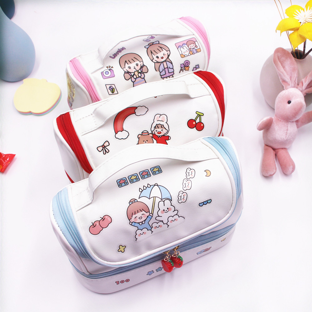 Ins二重手提げ化粧バッグ学生ペンバッグ大容量収納バッグ多機能化粧品収納バッグケース