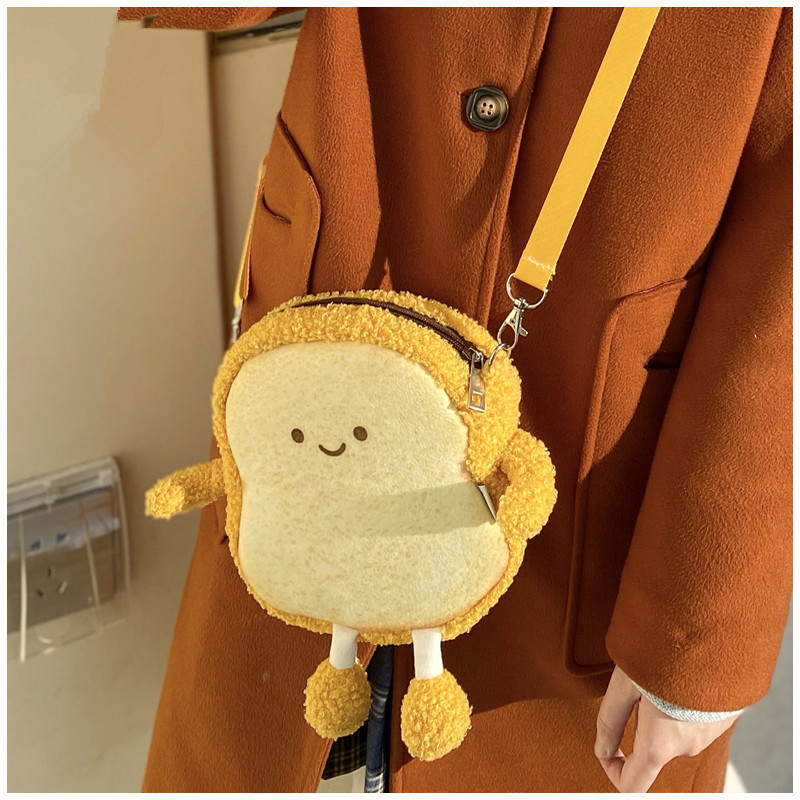 2022片肩ポーチ収纳バッグトーストパン斜めがけバッグ可爱いパイルバッグソフト妹女子バッグ