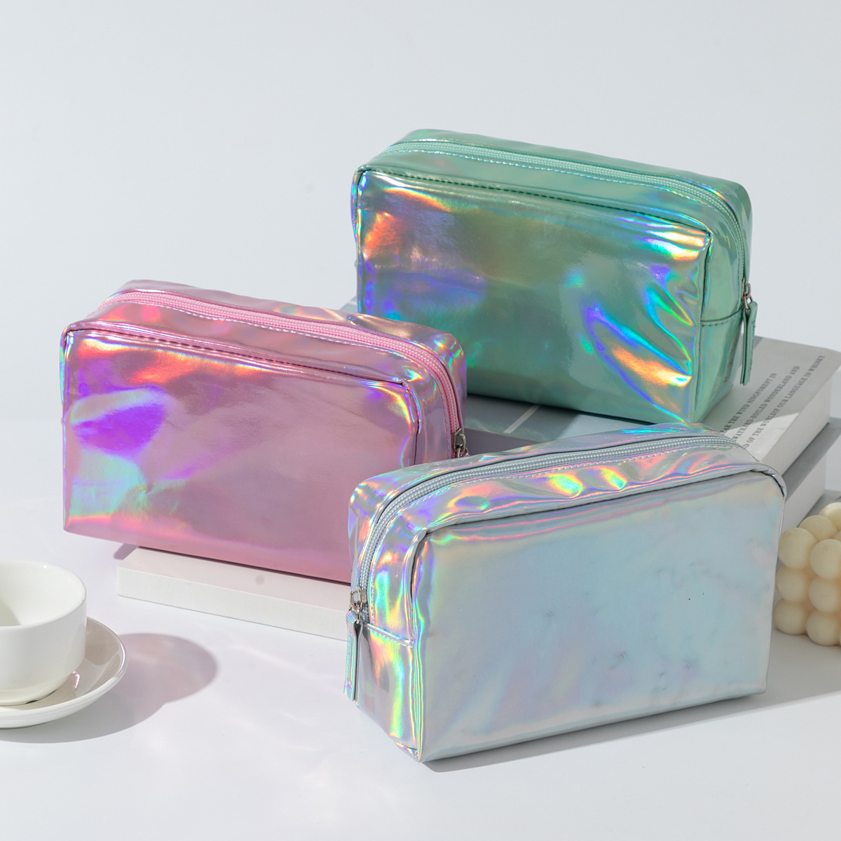 ファッションレーザーpu化粧バッグ携帯型カラフル角型大容量手持ち洗面収納バッグ女性収納バッグ