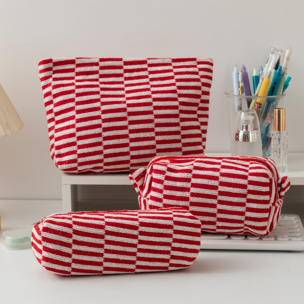 大容量衝突色格子学生筆袋ins風携帯化粧品収納袋スキンケアデスクトップ収納袋