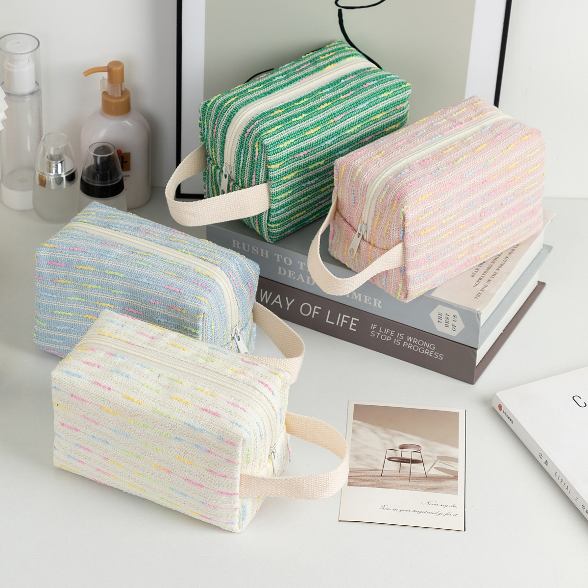 新型小香風大容量携帯化粧バッグins風高颜値洗面収納袋条紋刺繍旅行バッグ