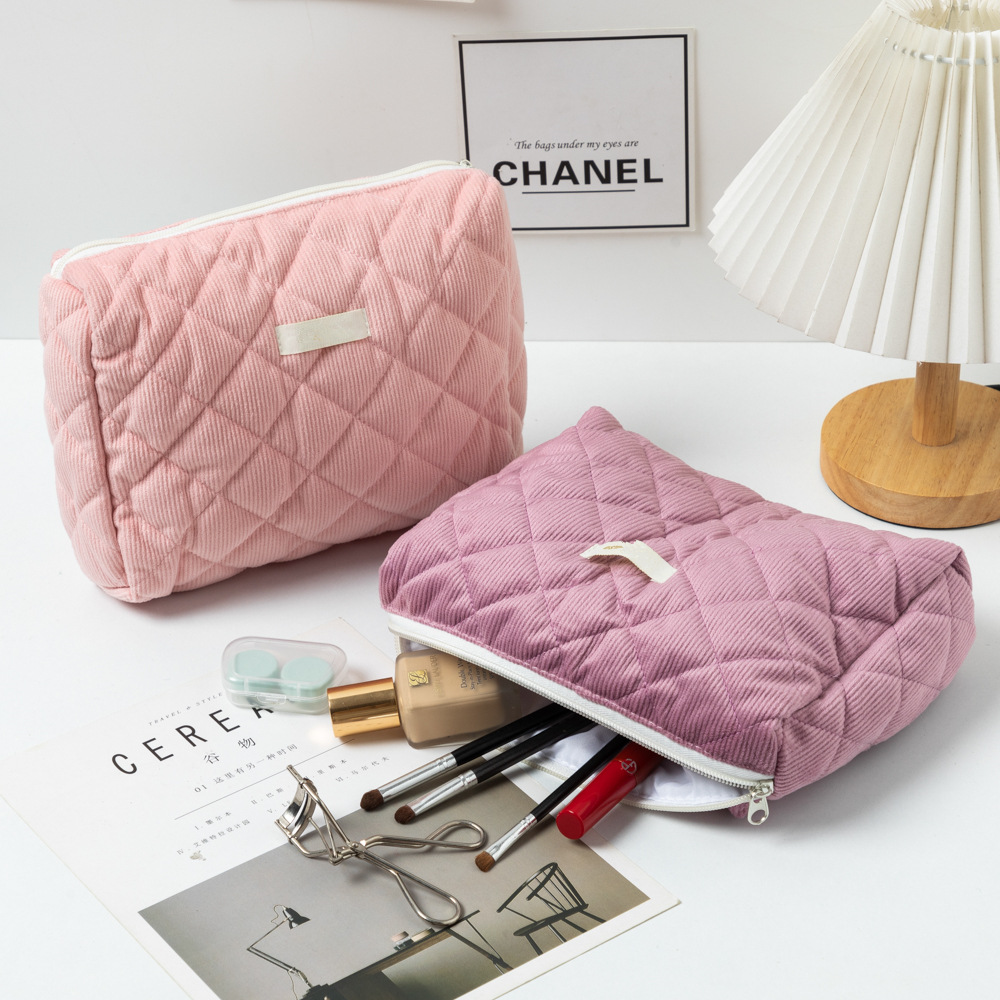 大容量コーデュロイ化粧バッグ無地キルティングひし形収納レディース学生化粧品収納バッグ