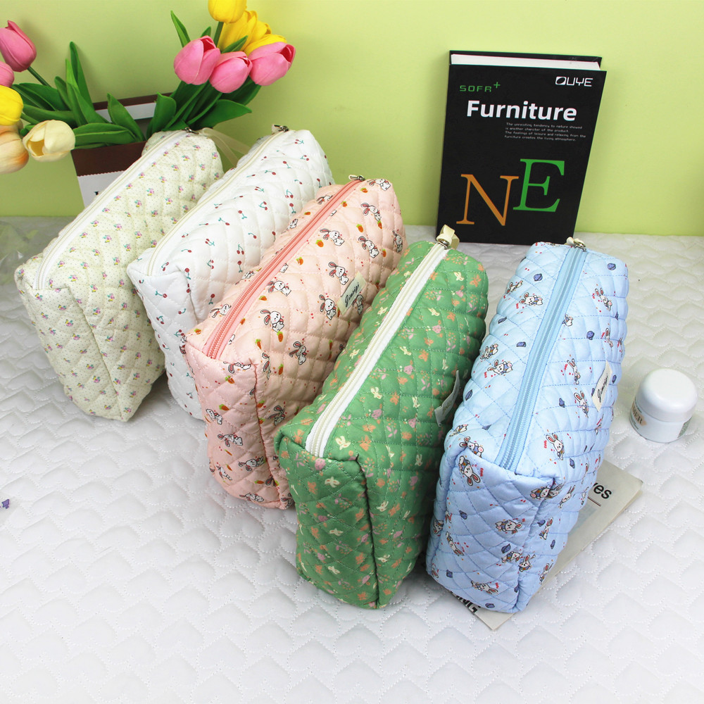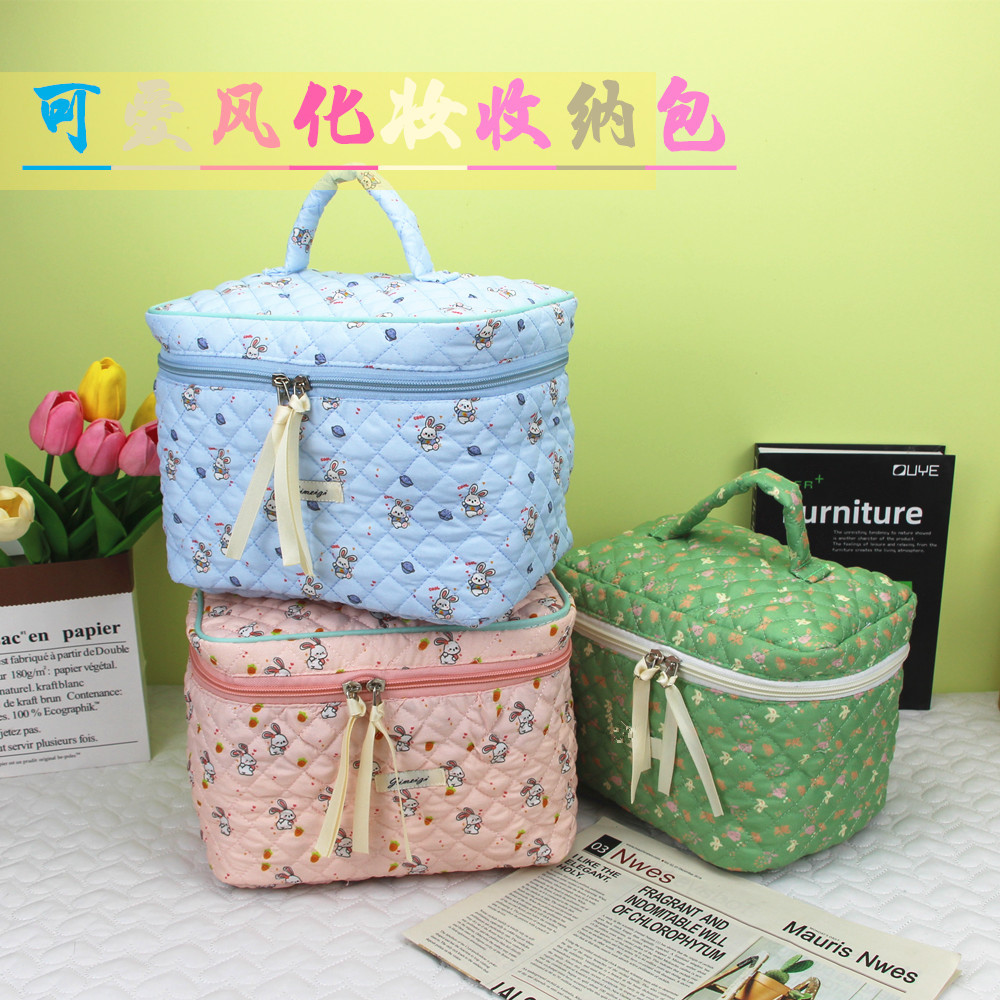 新品コットンプリントレディースバッグ可爱いインスタ风ポーチ大容量キルティング収纳バッグ学生バッグ洗面バッグ