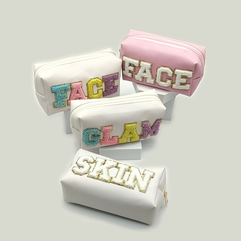 クロスボーダータオル刺繍アルファベットステッカー化粧ポーチクロスボーダーpu刺繍アルファベット布ステッカー防水ポータブル収納バッグ大容量