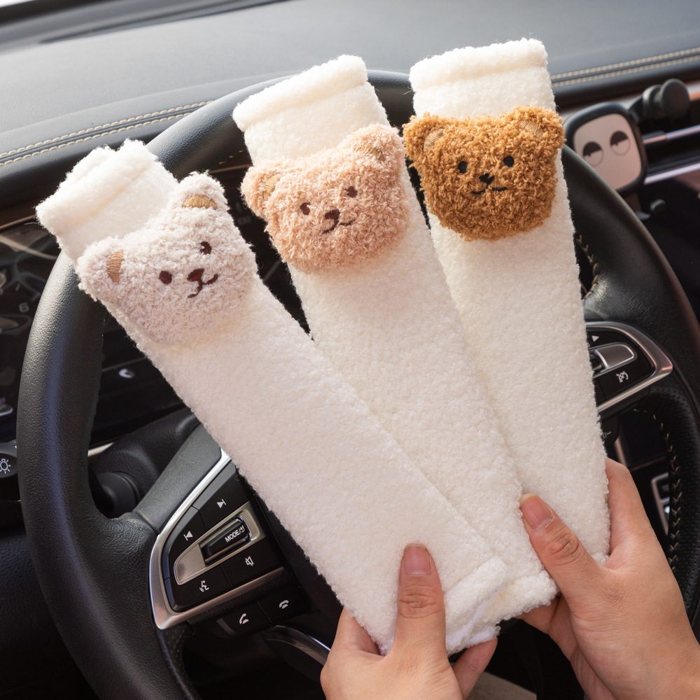 アニメの自動車シートベルトの肩カバーがかわいいベアーの子羊のベルベット車用の首ベルトの肩保護カバー