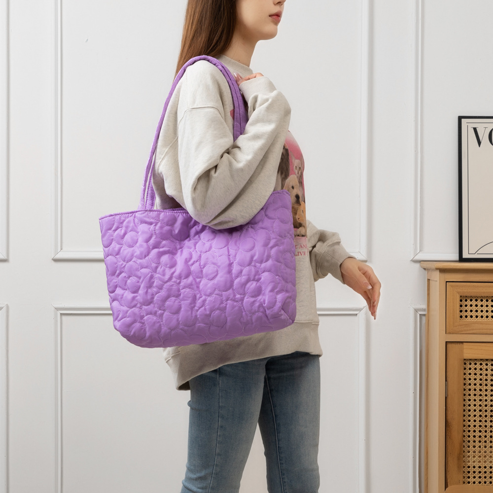 2023秋冬新作大容量レディーストートバッグ片肩手提げショッピングバッグキルティング花キャンディー色レディースバッグ