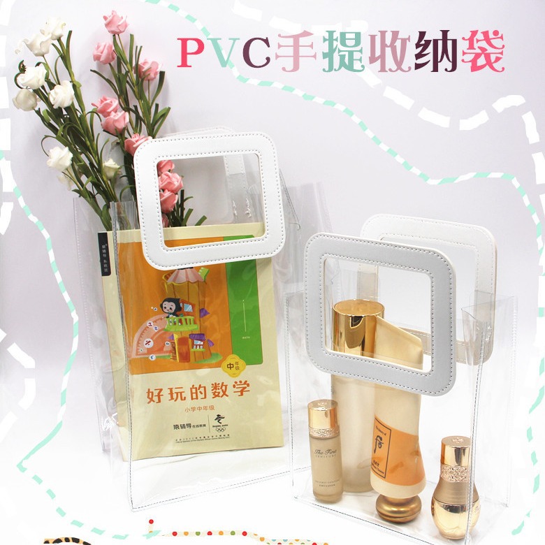 韓国版insシンプル無印風手提げ収納袋透明pvc大容量ハンドバッグスキンケア用品収納バッグ