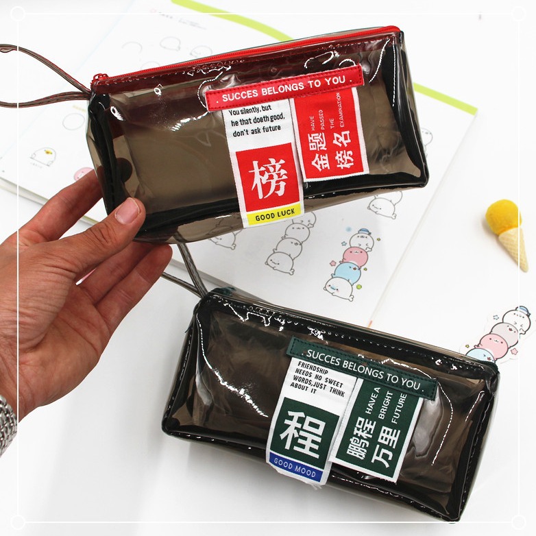 韓国版シンプル二重ペンバッグ透明pvc国潮文字収納バッグ大容量学生用品収納袋