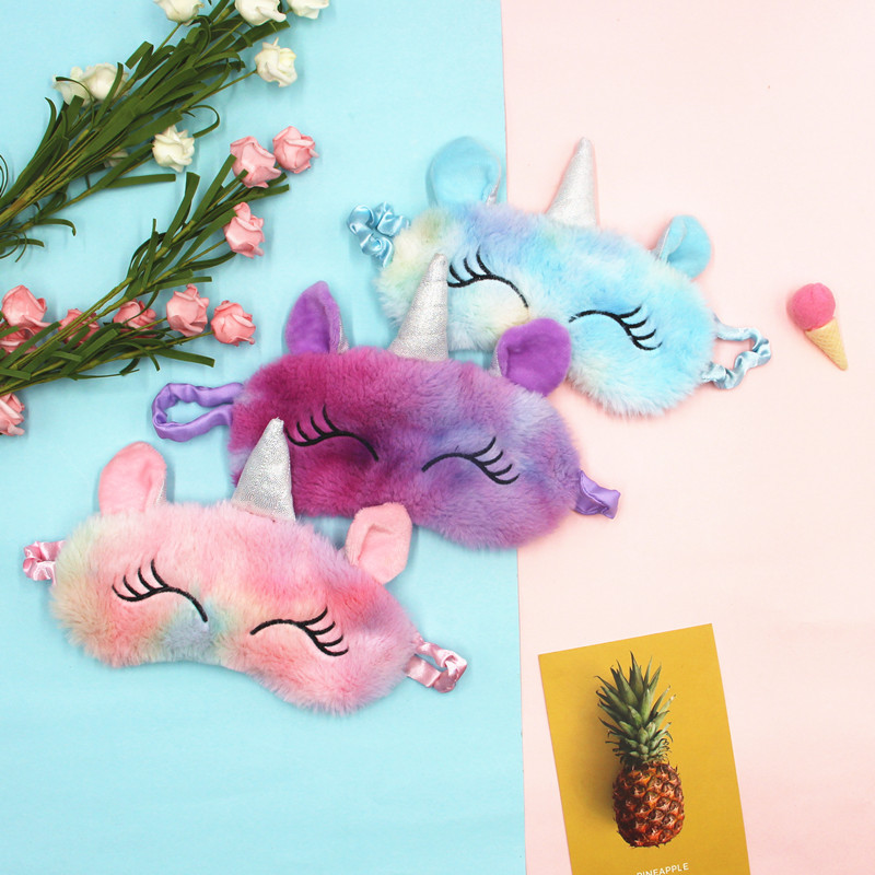 クロスボーダーのユニコーンのアイマスクのグラデーションのカラフルなぬいぐるみの遮光アイマスクは萌えの少女の漫画の学生の睡眠のアイマスクの女性を売ります。