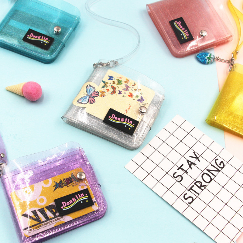 Blingキラキラ韓国ins証明書バッグ透明pvc折り畳み首の小さな財布の短い小銭入れカードバッグ女性