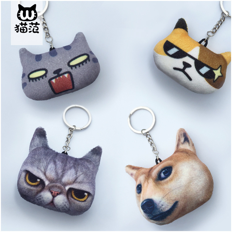 現物創意ギフト猫頭キーホルダー3dプリントキーリング小さいペンダントキーホルダー