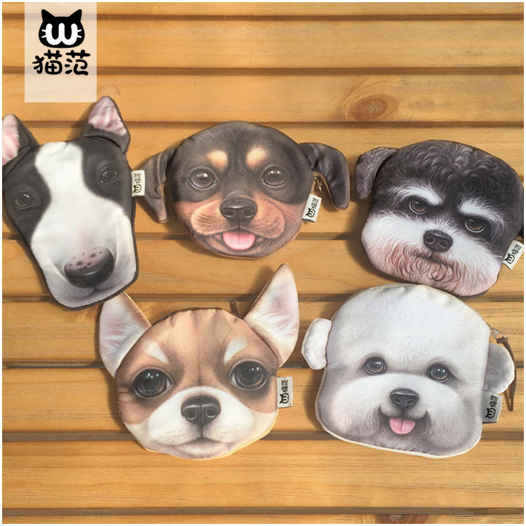 越境新型犬頭零財布3dプリント創意コインバッグ汪星人財布収納カードバッグ