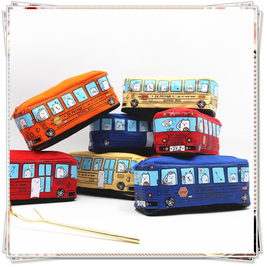韓国創意学生文房具小動物バス筆袋バス鉛筆ケース男女キャンバス文房具ケース