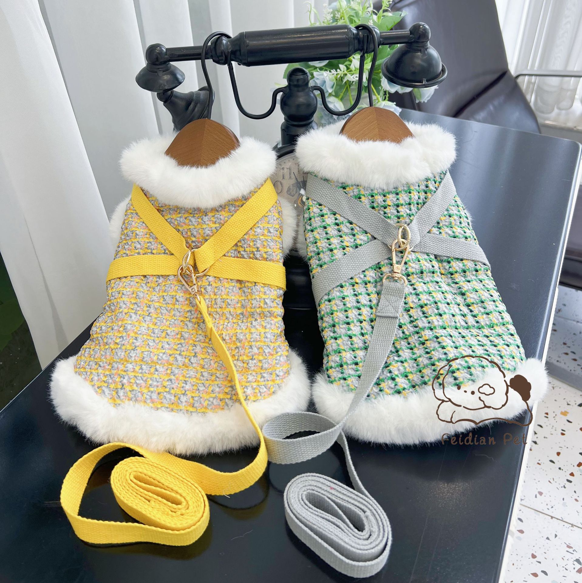 (牽引紐を贈る) 新型ペット小香風毛辺綿馬甲小型犬猫厚実牽引保温コート