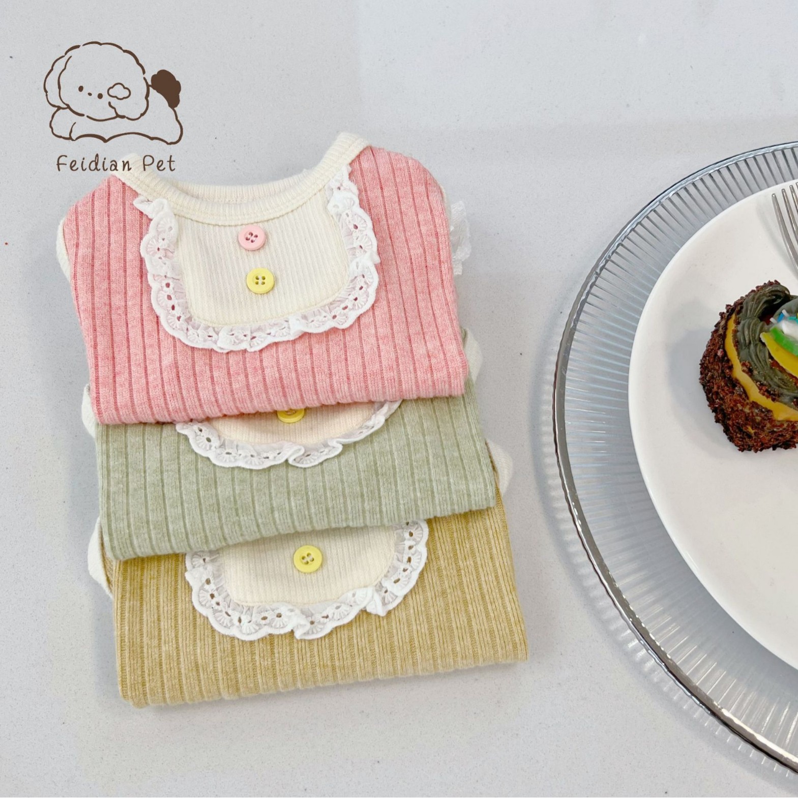 沸点ペット22秋冬色合わせよだれウールセーター猫犬かわいいins風坑条レース服ベスト