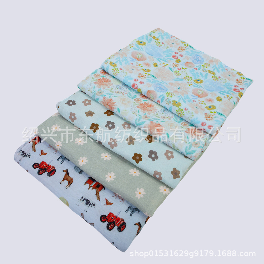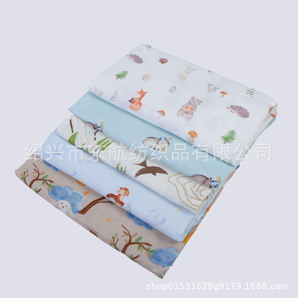 現物デジタル純綿二重ガーゼプリントベビー生地バスタオル家庭服子供服パジャマ吸汗タオル生地