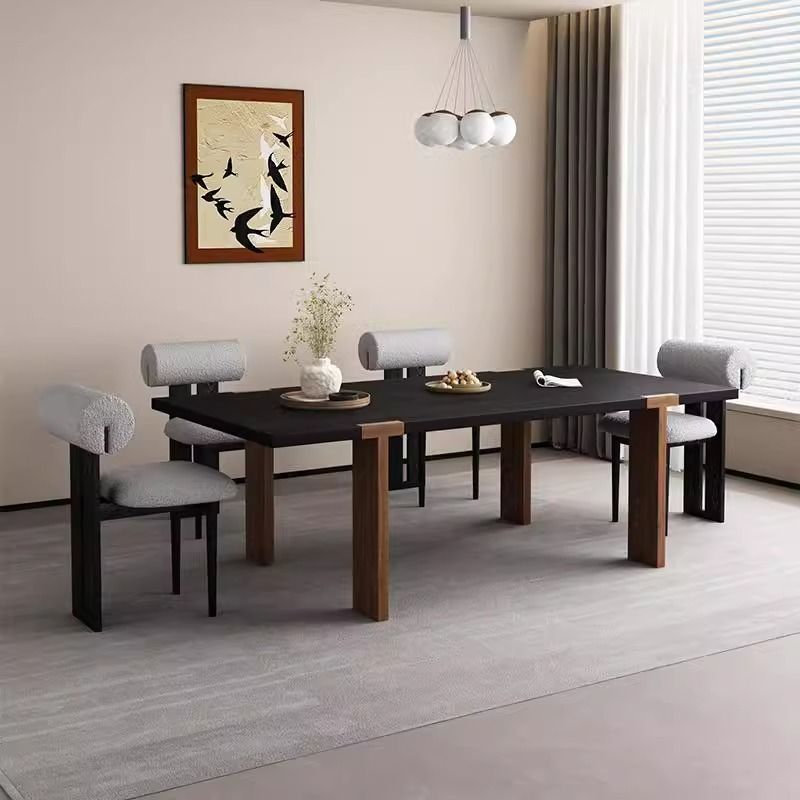 寂風客間黒色実木泡茶テーブルと椅子の組み合わせ家庭用レストラン炭化黒白蝋木テーブルと椅子の組み合わせ