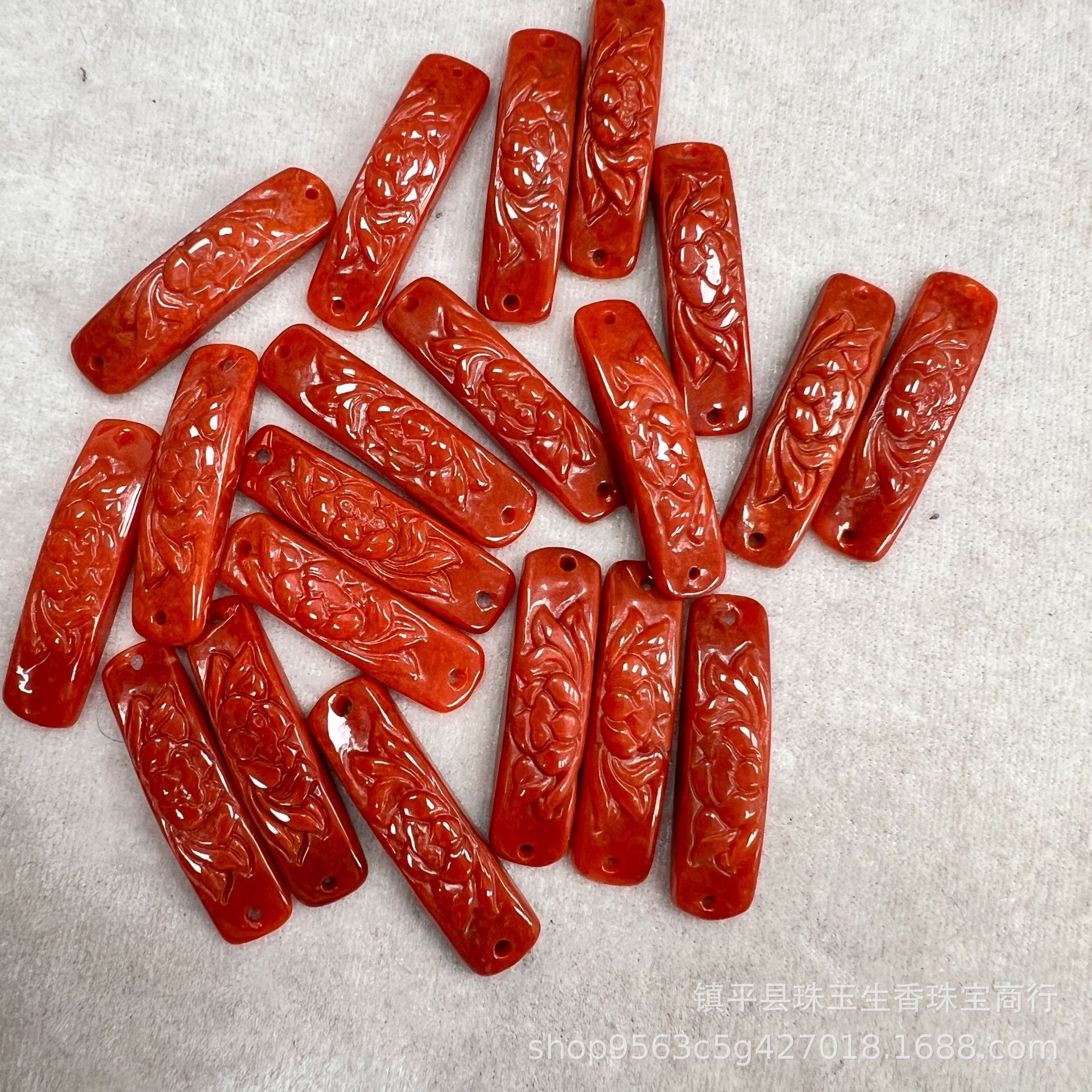 エメラルドレッド翡翠牡丹の花ハンドアクセサリー卸売 diy 翡翠ジュエリーブレスレットネックレス上下穴アクセサリー