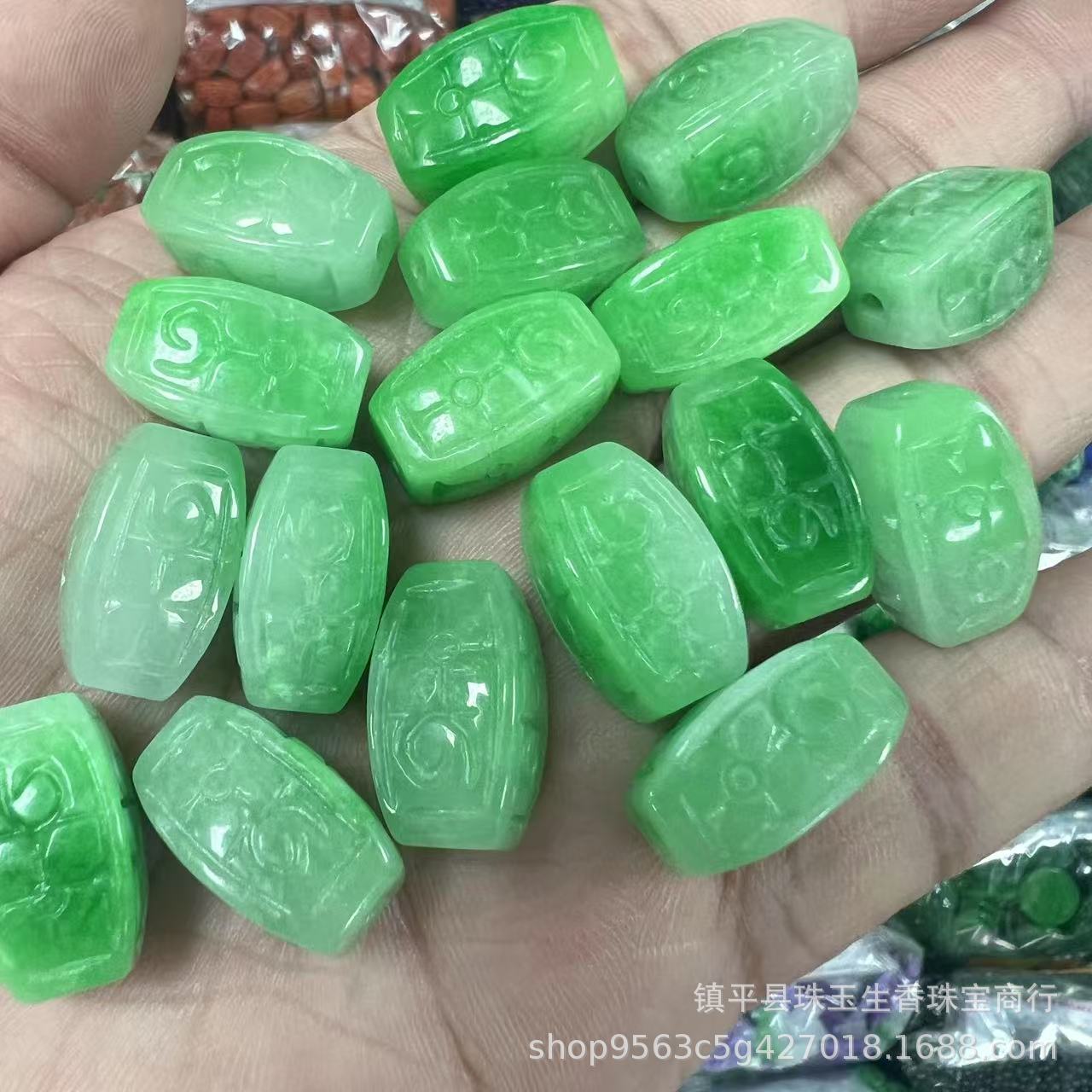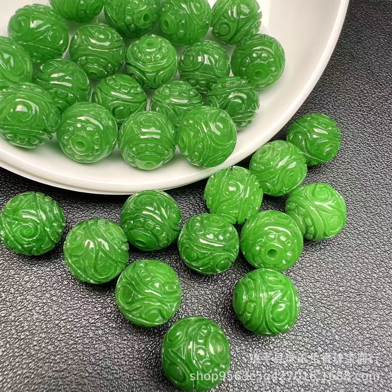 翡翠ルースビーズ、翡翠ドライグリーンパターンビーズ、ルースビーズ、エメラルドブレスレット、ネックレスアクセサリー、ルースビーズ、レリーフ翡翠ビーズ