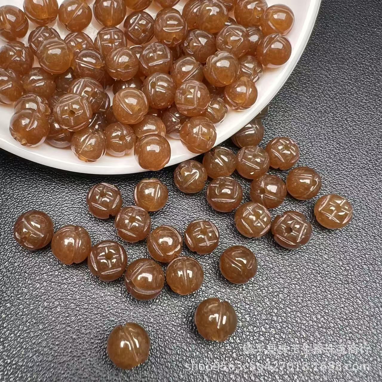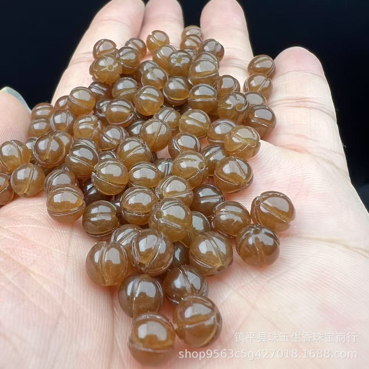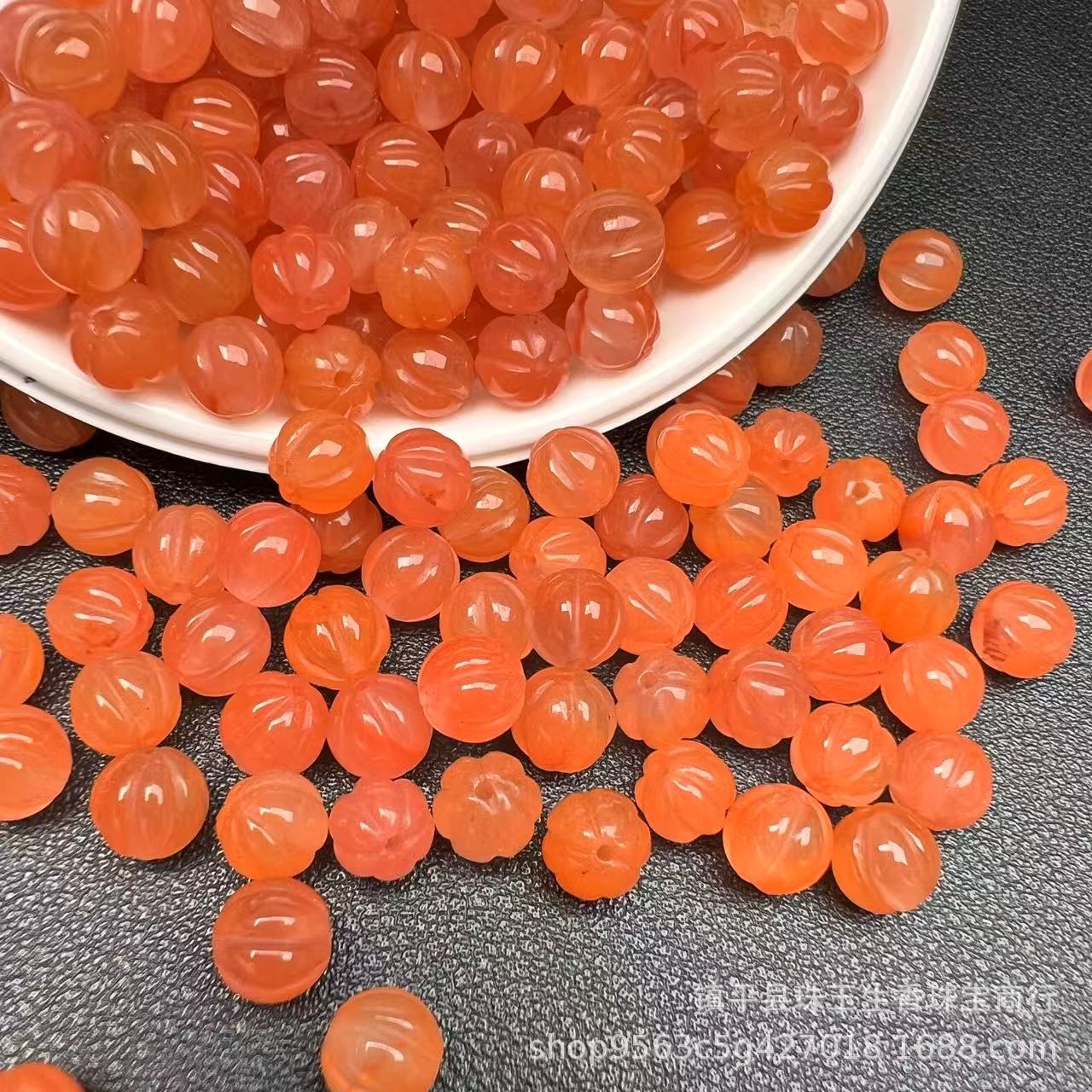 和田あめ色かぼちゃ玉髄散珠半製品diy手編み丸珠ブレスレットネックレスアクセサリー材料