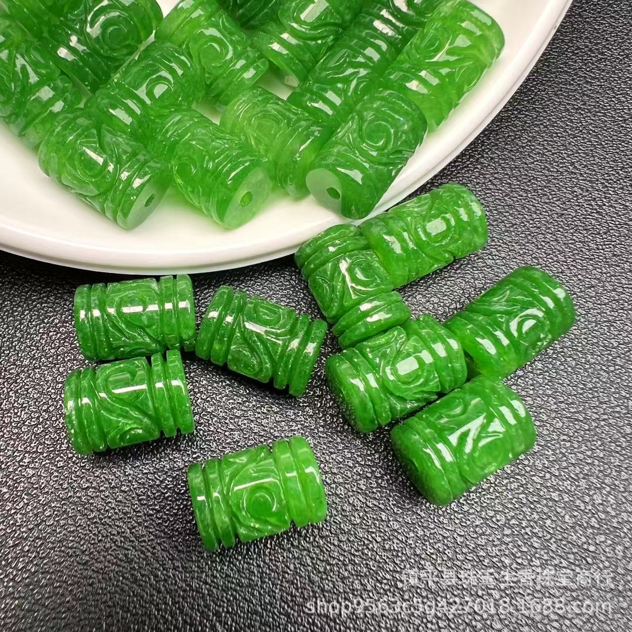 DIYアクセサリーアクセサリー乾青鉄龍生翠玉彫刻花筒珠散珠小孔緑玉回紋桶珠バッチ