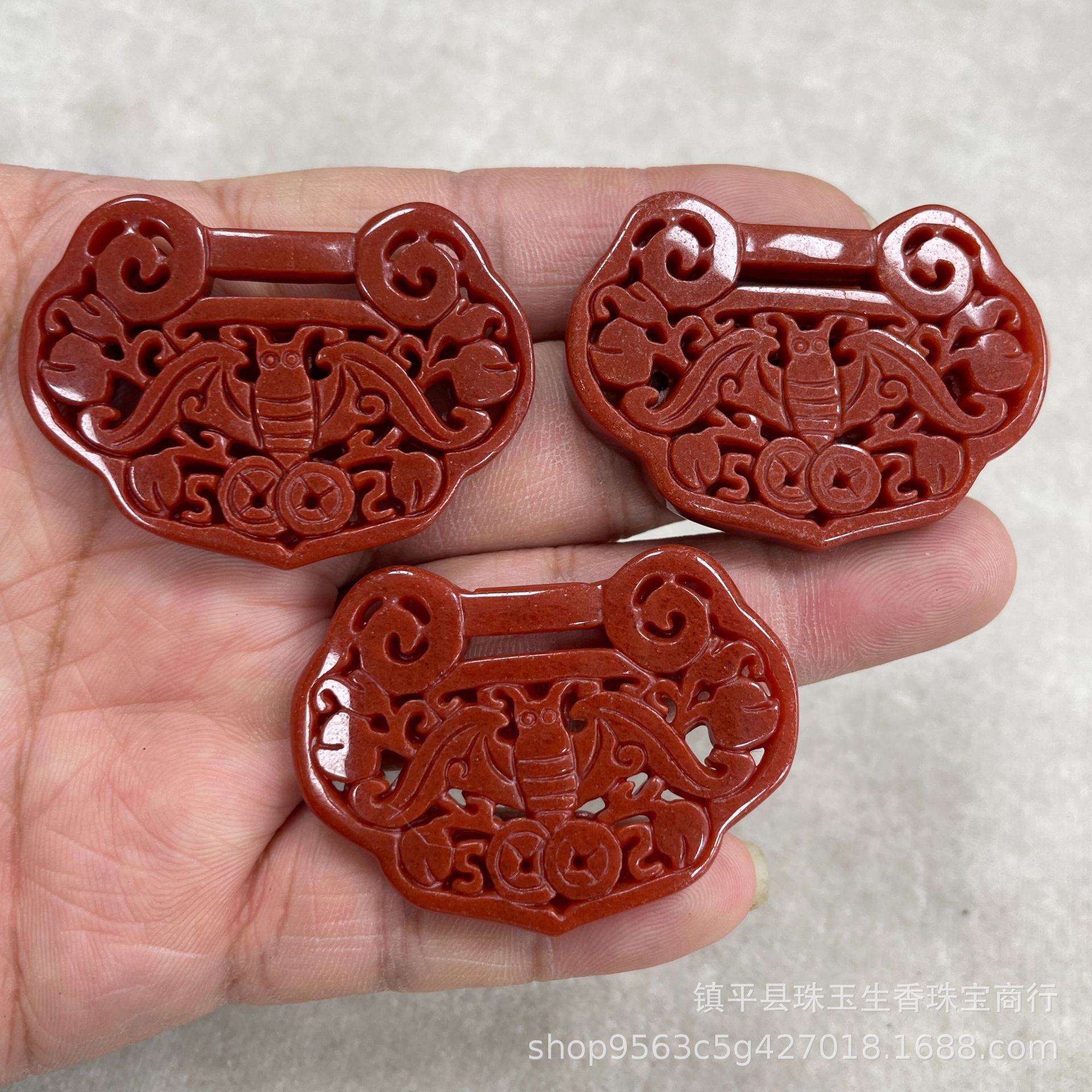 エメラルド中空焼き赤翡翠如意ロック部品翡翠 diy ペンダントイヤリングジュエリーアクセサリー卸売