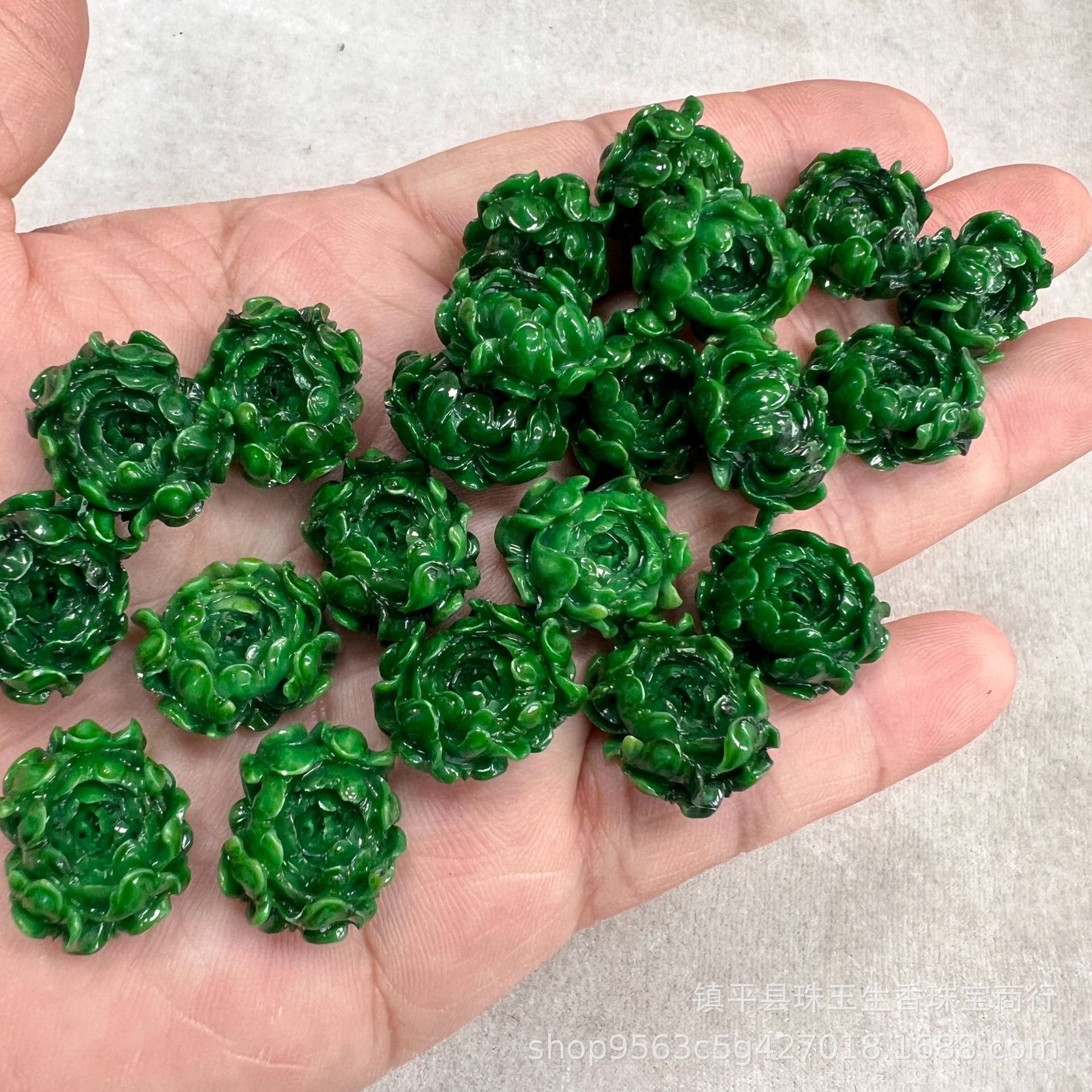模造翡翠ドライグリーン祝福ロックペンダント卸売 diy イヤリングブレスレットエメラルドレトロスタイルフラワーアクセサリールースビーズ