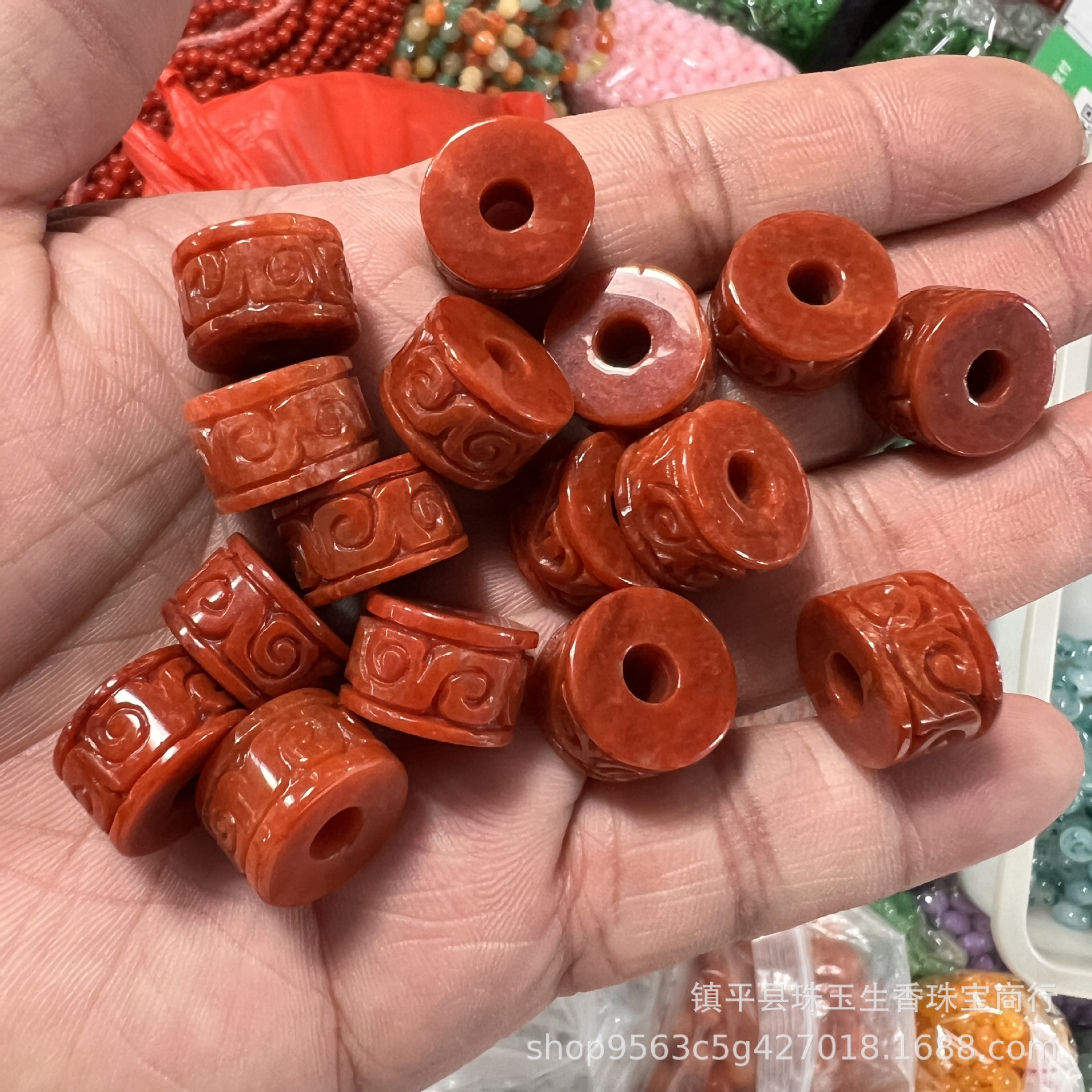 赤翡翠彫刻パターンバレルビーズルースビーズ卸売 diy 翡翠ジュエリーアクセサリーマネービーズ大穴バレルビーズ passepartout