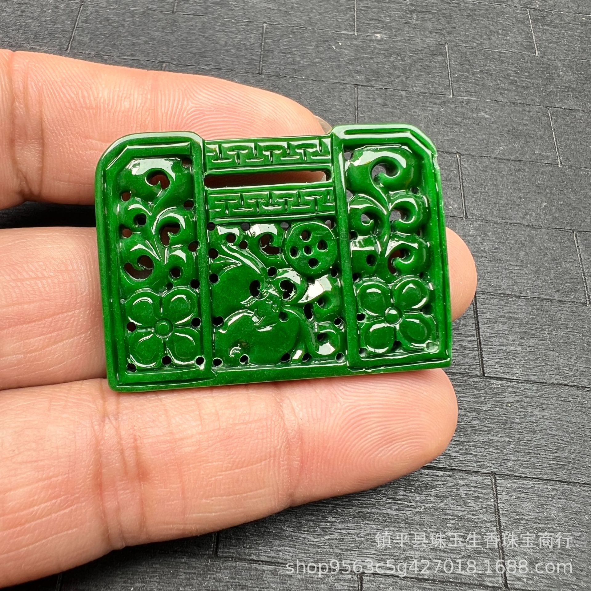ビルマ翡翠ペンダントドライグリーン中空アンティークブランドルースビーズアクセサリー如意ペンダント DIY アクセサリーマネースクエアカード