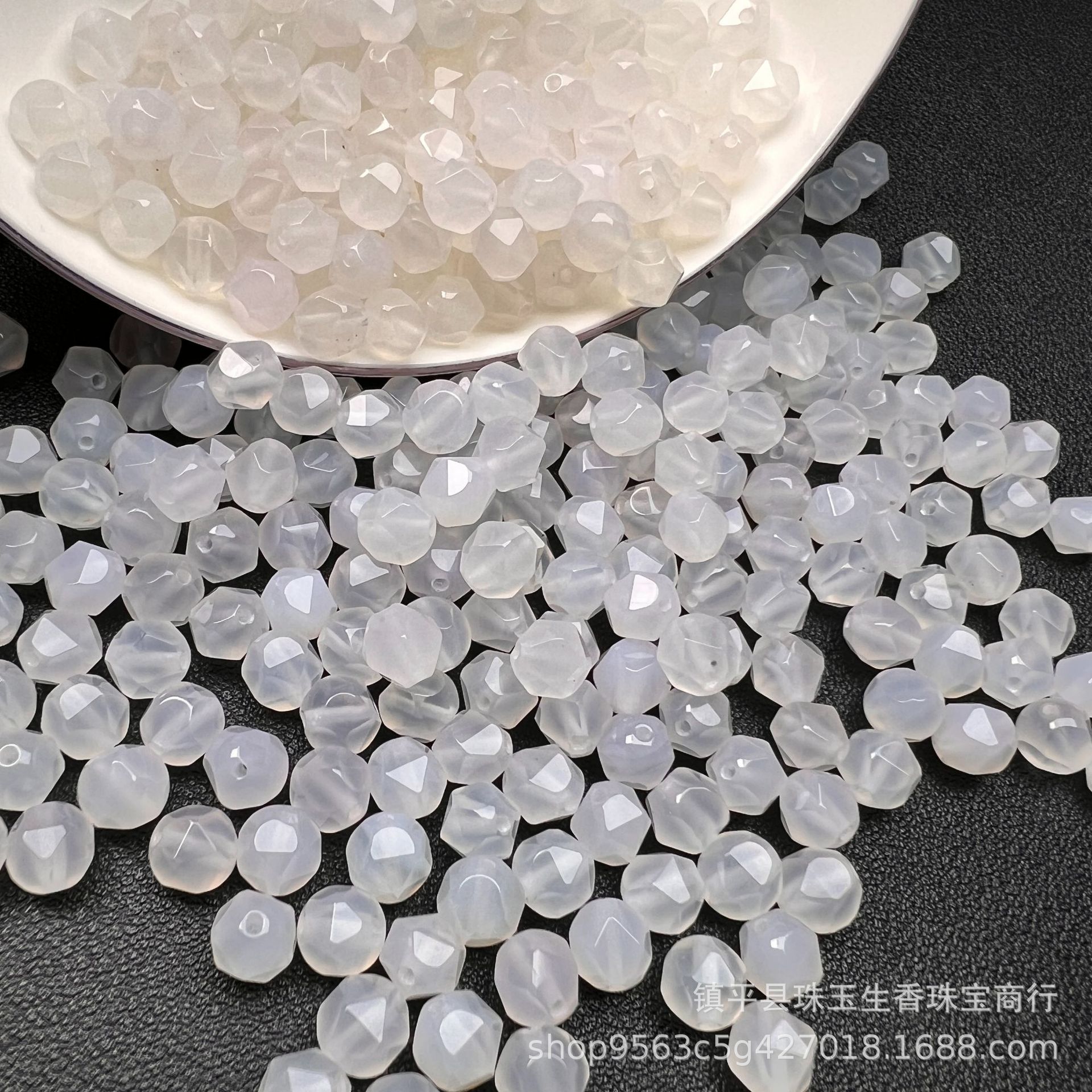 天然白瑪瑙6mmダイヤモンド面切断面八稜珠散珠diy水晶ビーズ不規則玉部品