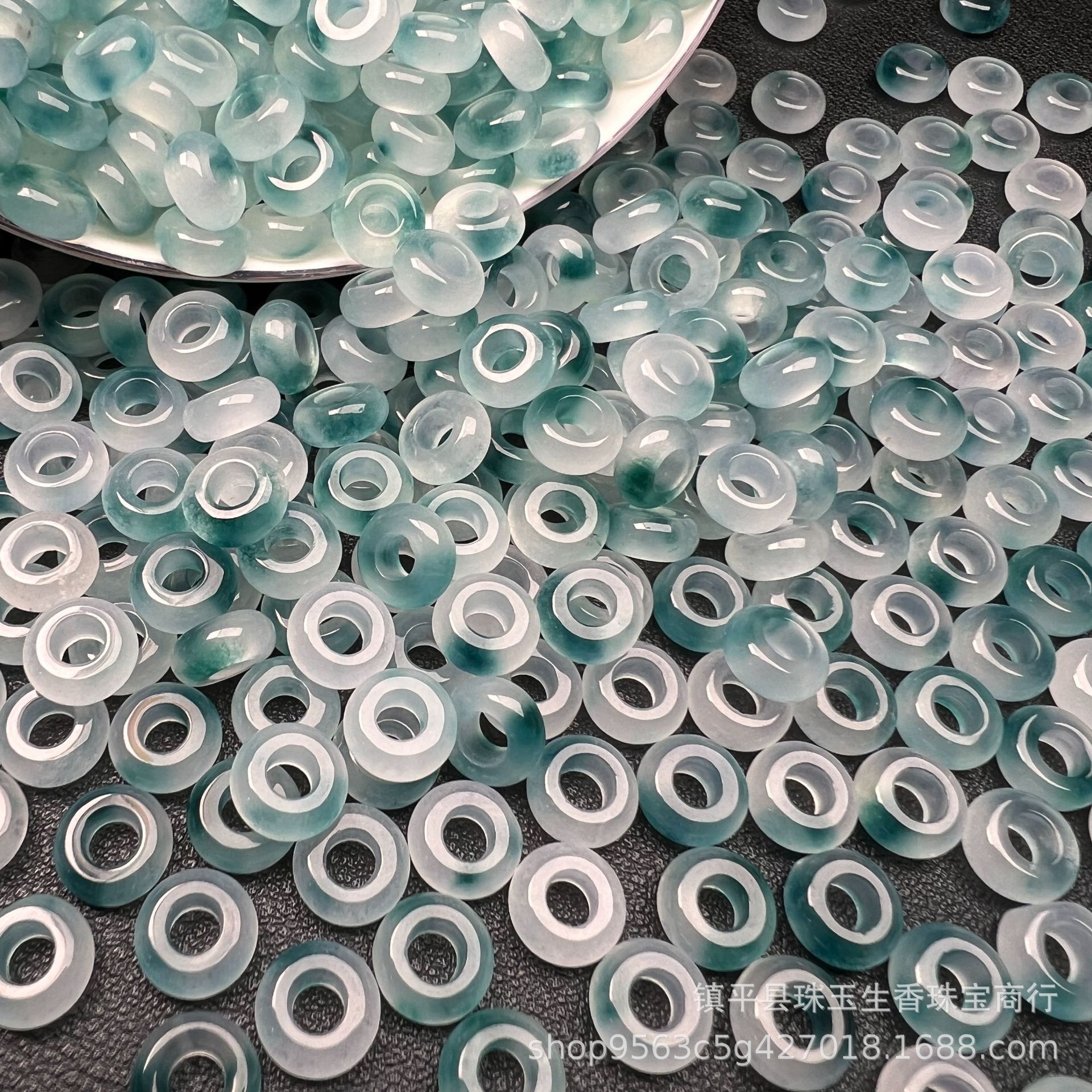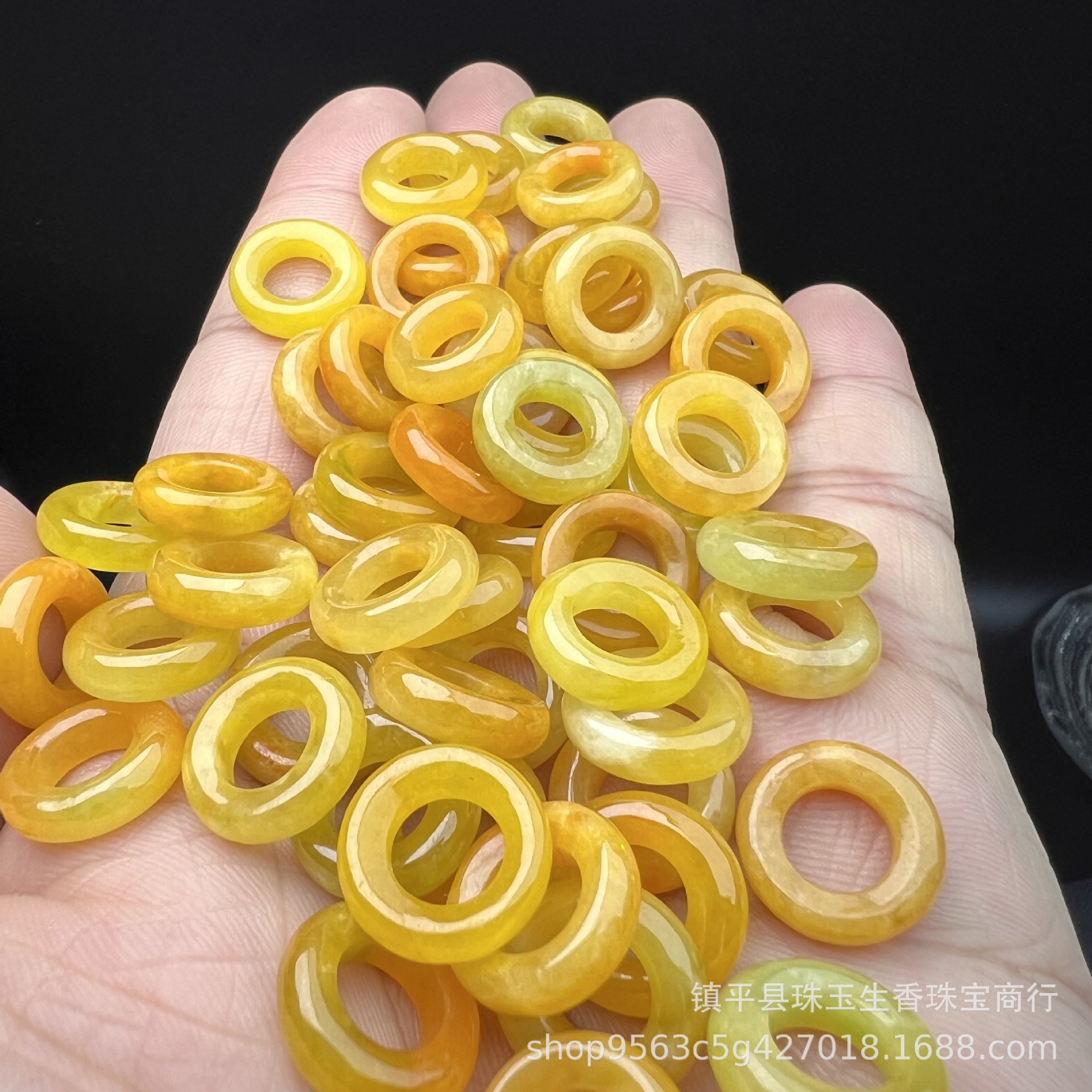 翡翠玉黄翡翠大孔円環玉散珠玉ボタン吊り環ドーナツブレスレットネックレスアクセサリービーズ