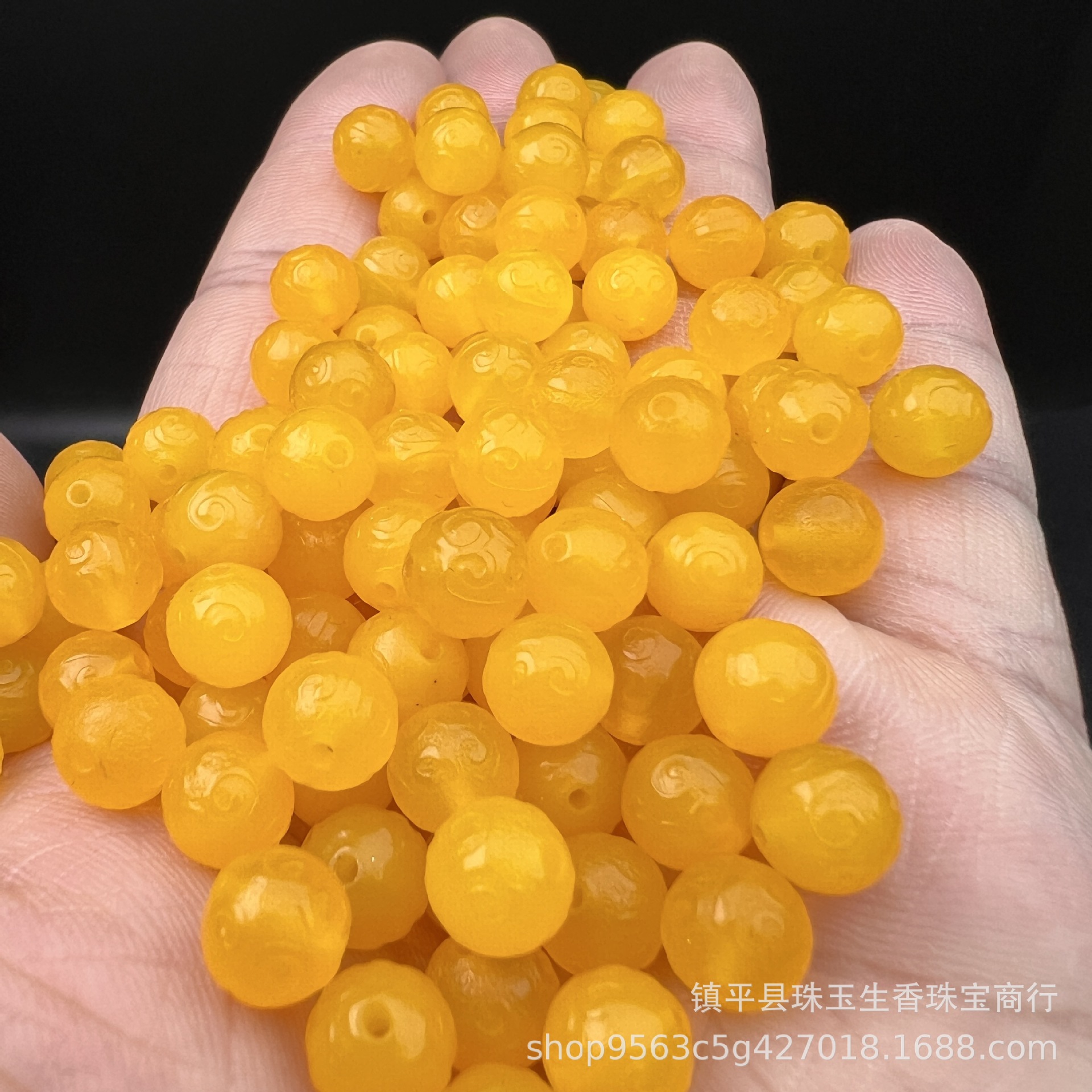 天然黄瑪瑙回紋散珠8mm単珠diy手作りビーズ編みボールブレスレット散珠部品卸売り