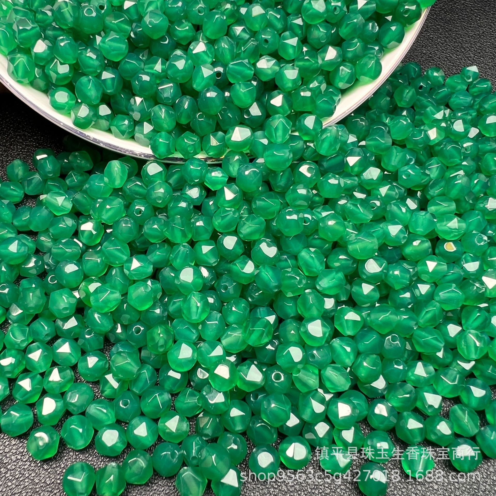 天然緑瑪瑙6mmダイヤモンド面切断面八稜珠散珠diy水晶ビーズ不規則玉部品
