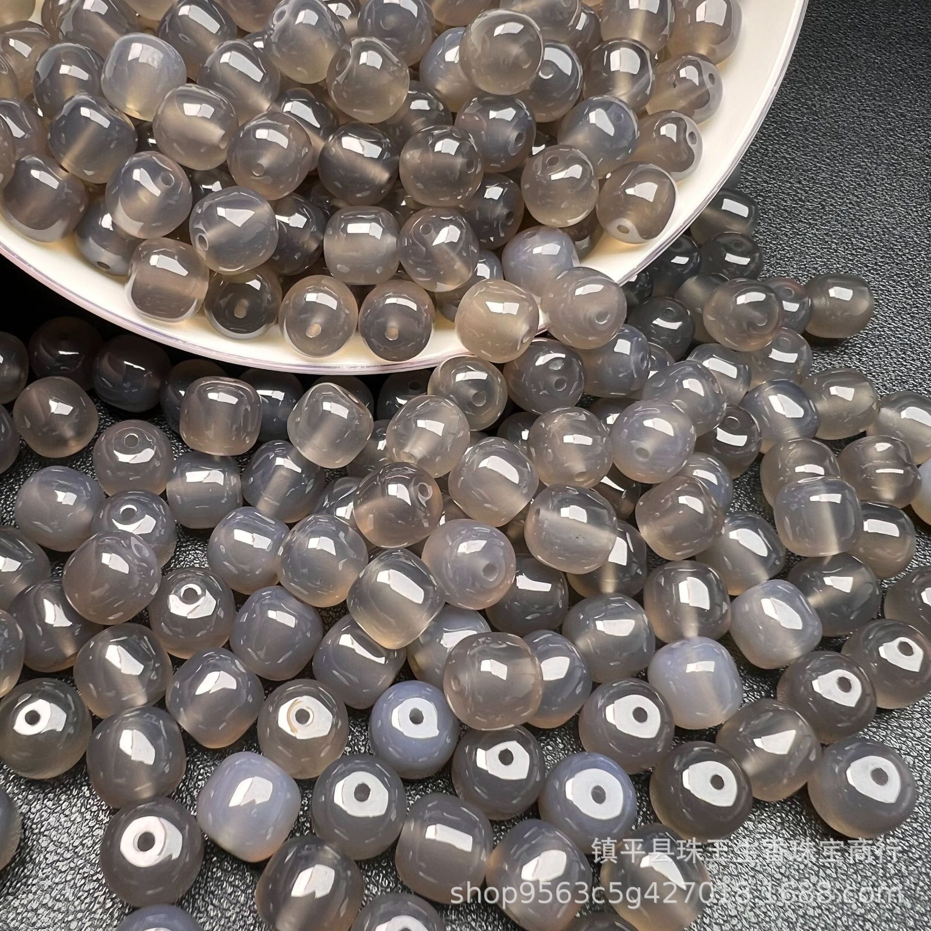 天然の灰色瑪瑙の古い型の玉の散珠diyの手作りの数珠の水晶のブレスレットの部品の煙の紫玉髄のアクセサリの材料