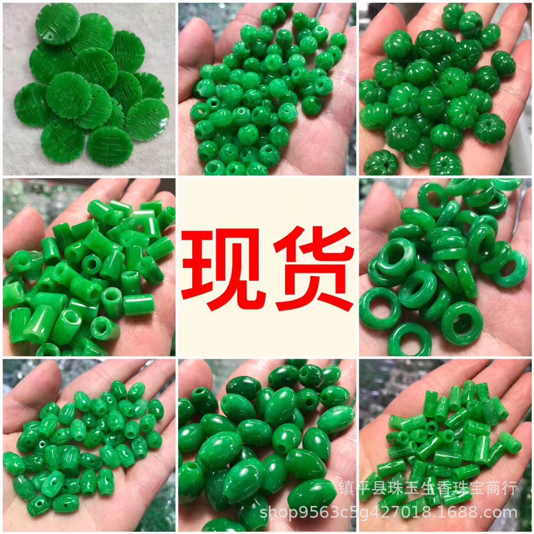 乾青鉄龍生翡翠散珠祖母緑アクセサリー平安ボタン路通diy編制ビーズ