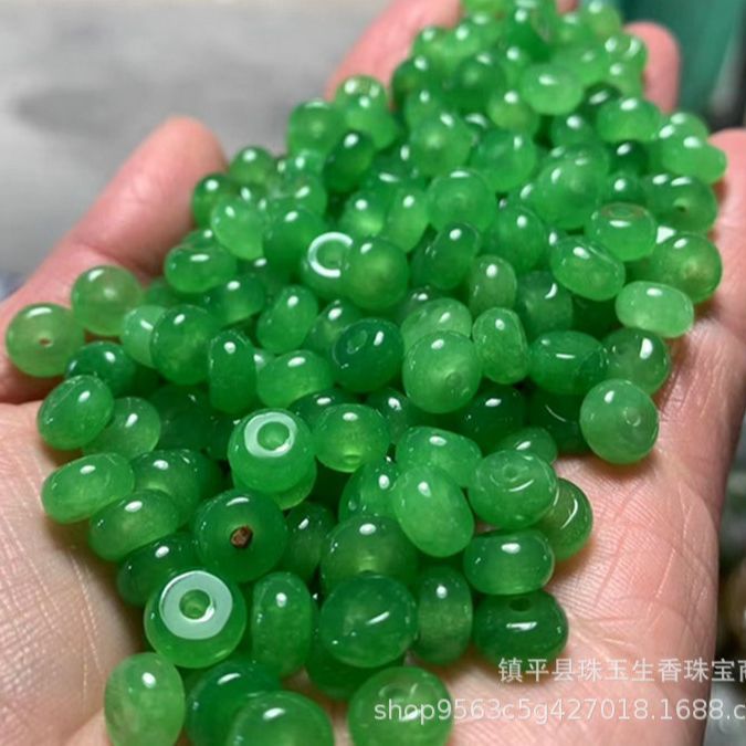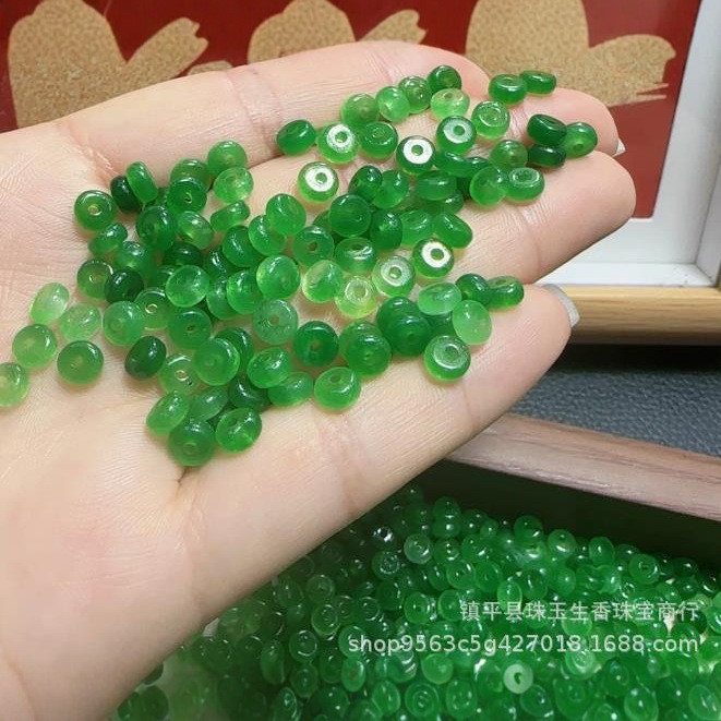 翡翠巴山翠散珠部品祖母緑diy玉そろばん玉平安ボタンは半製品のブレスレットのネックレスを編みます。