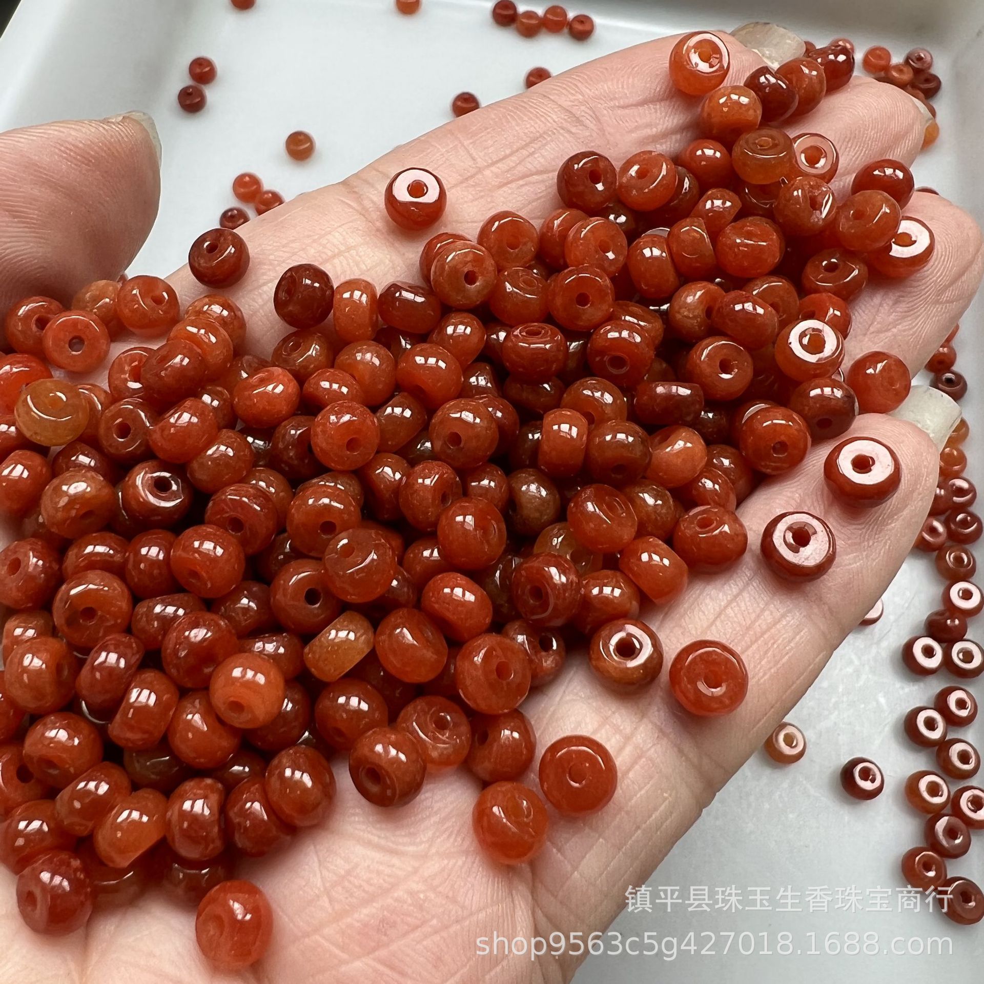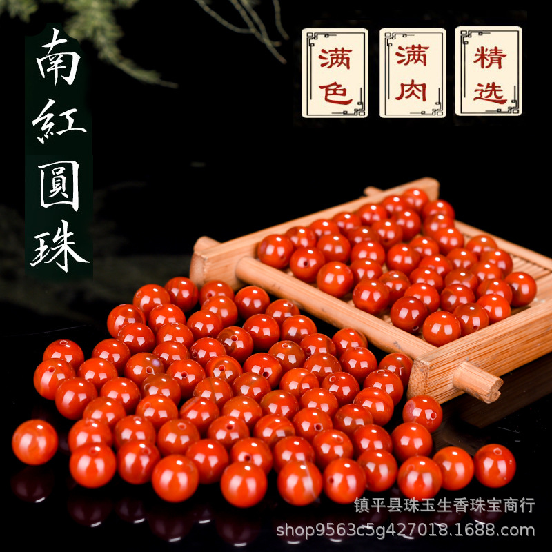 天然南紅瑪瑙散珠原鉱保山凉山円珠満肉柿紅手串隔珠ネックレストップ珠