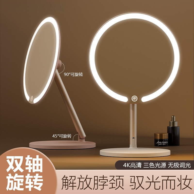 ライト付き二軸化粧鏡デスクトップデスクトップ学生寮 LED 化粧鏡折りたたみポータブル充電式補助光ミラー