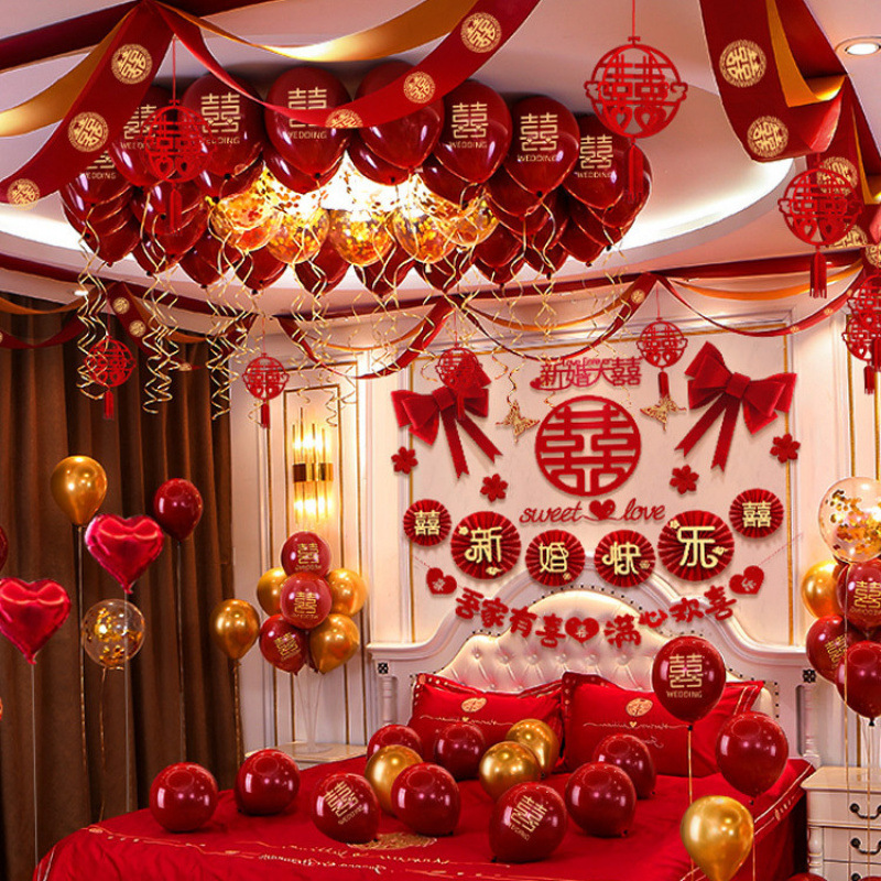 結婚式の寝室、結婚式用品、女性の結婚式の部屋の装飾セット、バルーン、結婚式の新しい部屋、男性の装飾部屋