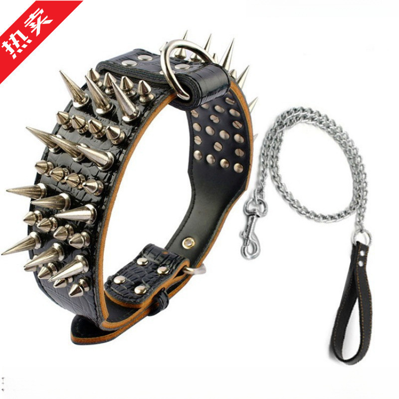 犬の噛みつき防止首輪、牽引ロープ、ブルドッグ、ピットブル、カスロードッグ、リベット、シェパード、オオカミ対策