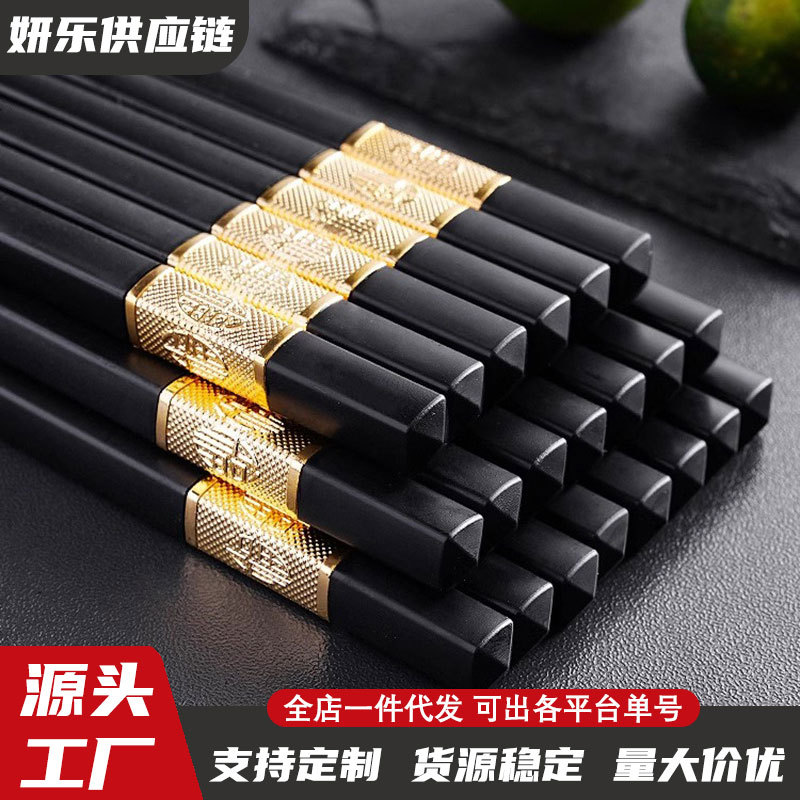 家庭用キッチン10足入り合金箸金福高級耐高温滑り止め箸ホテルレストラン食器