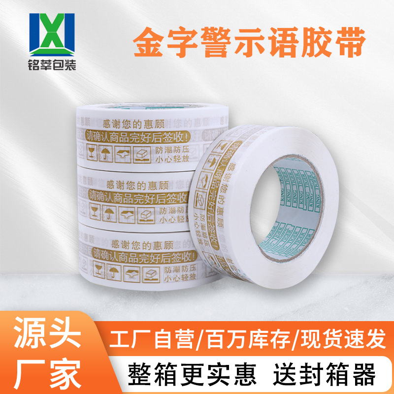 警告語テープ白色金字封箱テープ卸売り印字偽造防止包装4.5*2.5梱包テープ