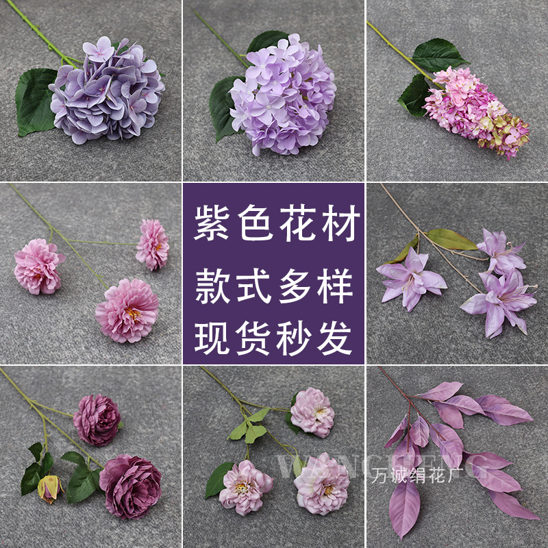 紫の結婚式堂の花洋牡丹の球菊のアジサイの雪が漂っています。