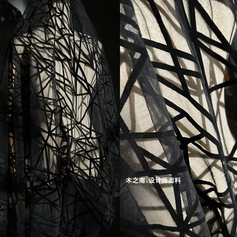 黒い植毛の幾何学模様のジャカードの不規則な蓬のスカートの布地の透視ネットの服