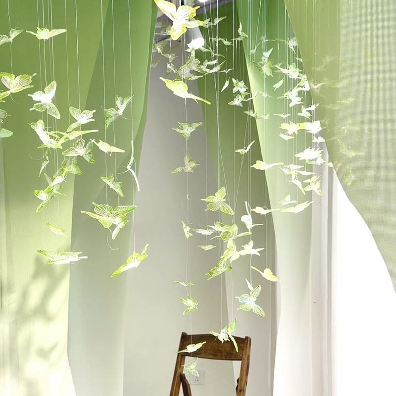 春のクリスタル蝶の吊り下げ装飾品ショッピングモールグリーン吊り下げ装飾背景装飾グラデーショングリーン半透明ガーゼ