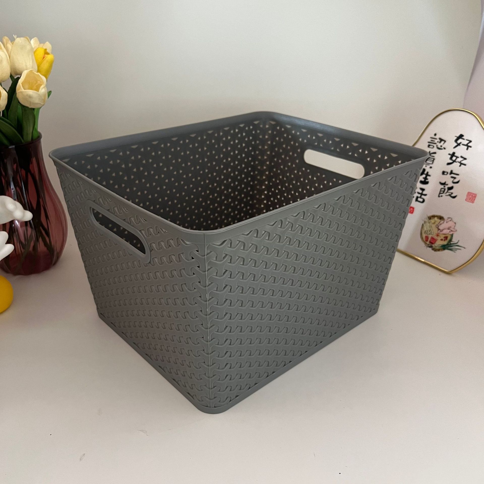蓋なしプラスチック収納ボックス編み柄玩具衣類収納バスケット多機能編みスナック収納ボックス