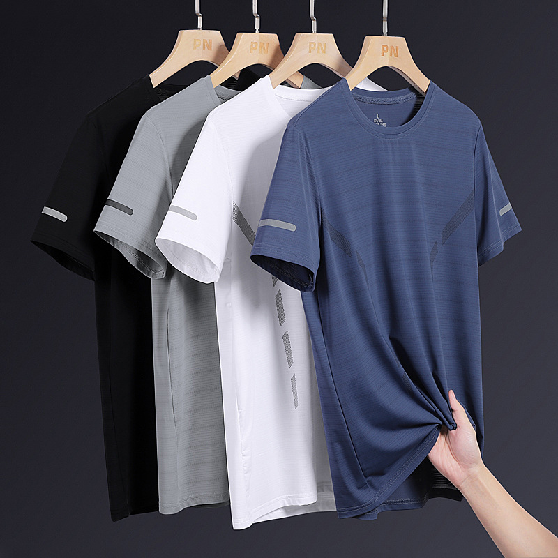 夏のカジュアルスーツ男性超薄型速乾氷糸半袖tシャツスポーツ5分半ズボンランニング2セット