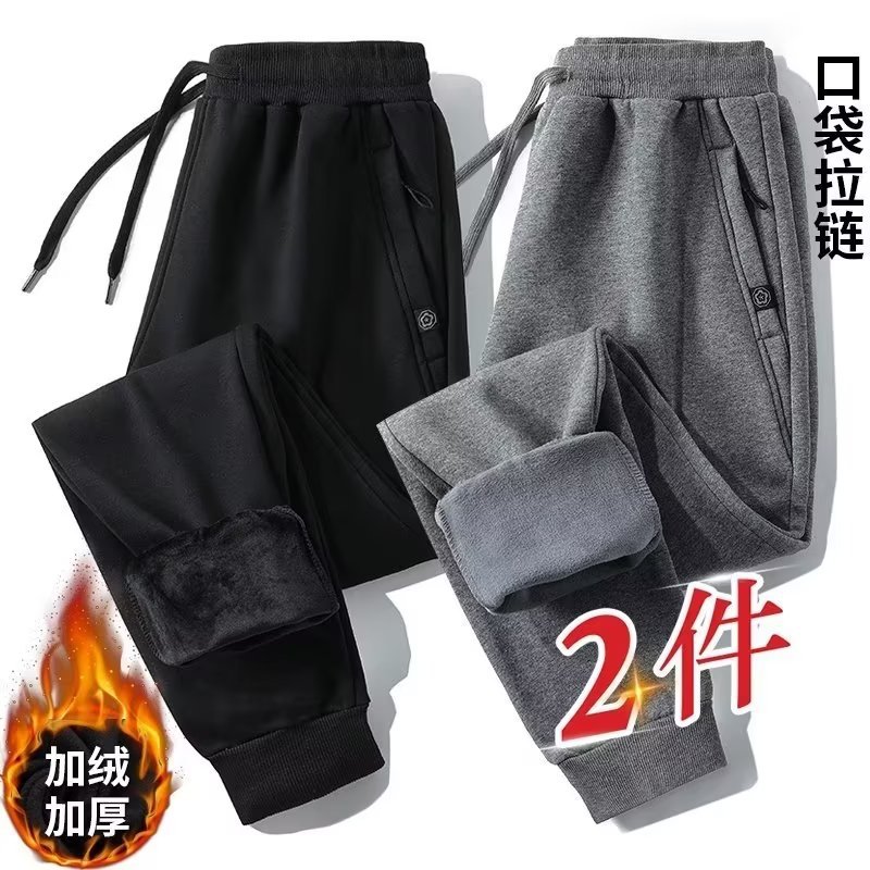 秋冬の羊の小毛のズボンの男性insの潮のブランドの綿のズボンのゆったりしている大きいサイズのベルベットの厚いズボンのまっすぐな筒の運動の衛のズボン